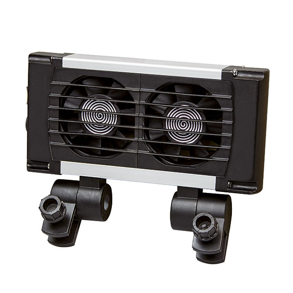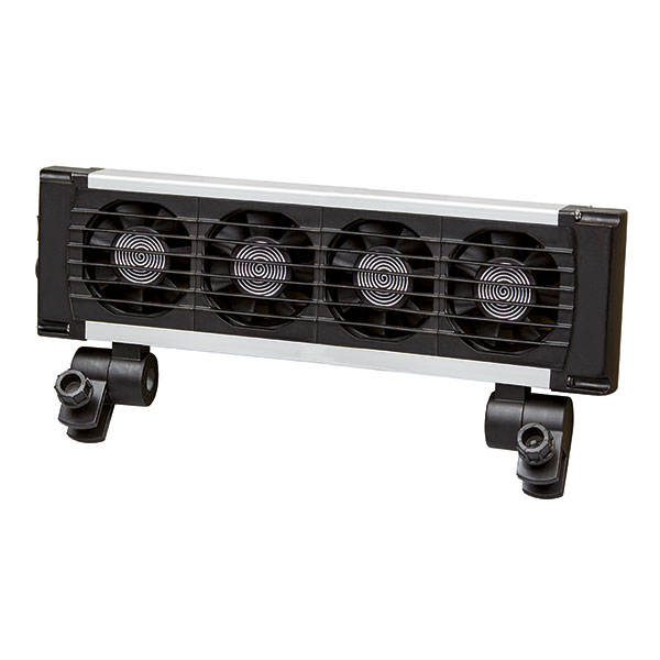 AQUA COOLER V4 – Enfría acuarios de hasta 300 l en 4 ° C. Montaje simple, ventiladores con seguridad y cubierta inclinable hasta 55 °. Adecuado para agua marina, ya que está hecho de de aluminio. Incluye voltaje extra bajo con transformador de seguridad