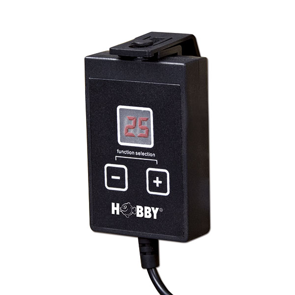 AQUA COOLER CONTROL – Controlador digital para ventiladores Aqua Cooler. Regule esto al grado. El sensor integrado mide la temperatura en el acuario mostrándola en una pantalla digital. El rango de ajuste es de 0 a 40 ° C con tres velocidades programables . El controlador tiene una fácil conexión con HOBBY Aqua Cooler V2 o V4