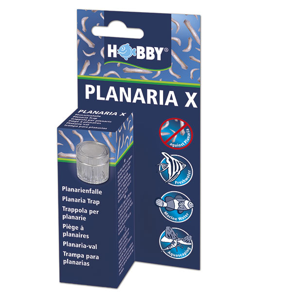 Trampa para planarias en acuarios marinos y de agua dulce. Atrápa lo sparásitos del acuario de uuna forma fiable y sin productos químicos. Dos cebos incluidos. La concepción especial con ocho aberturas previene que las planarias salgan de la trampa. También disponible el cebo por separado.